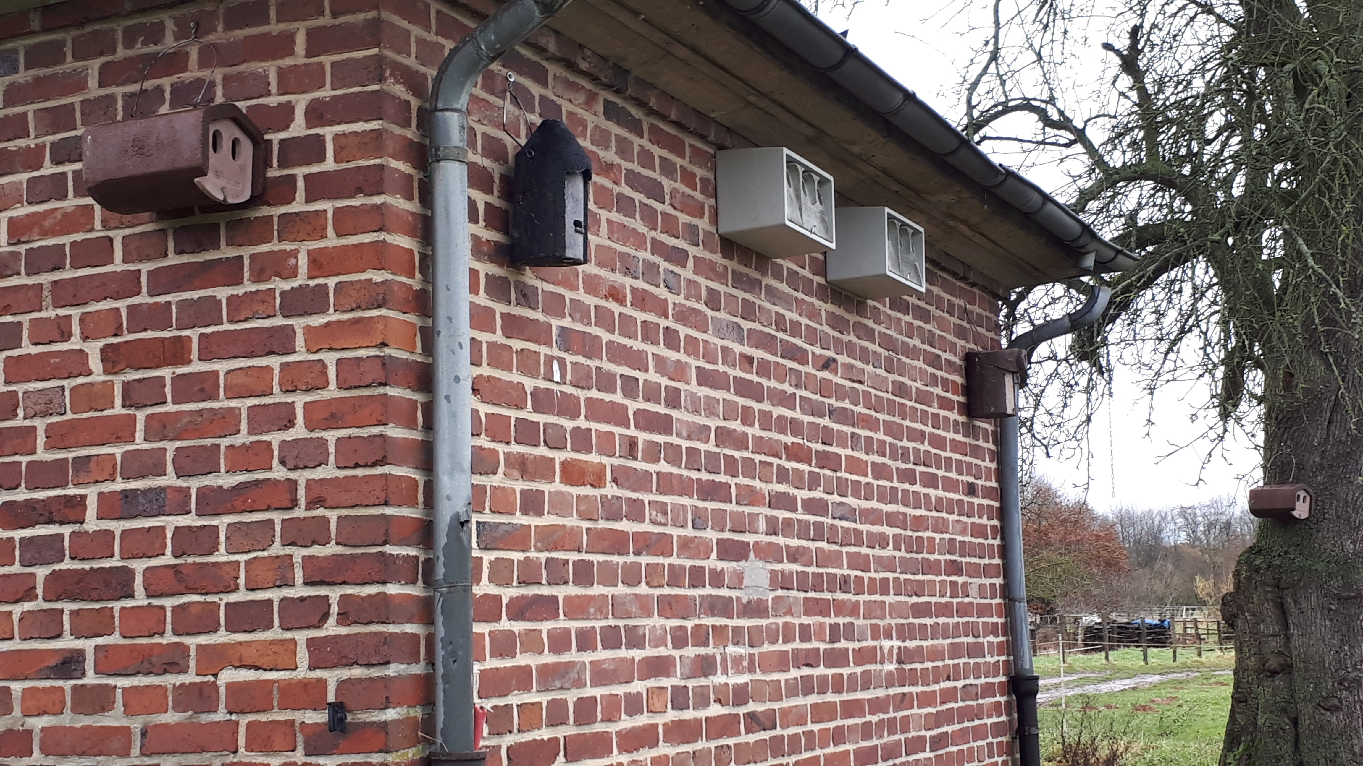 Alternativ kann das Modell 48 mit 36 Mehlschwalbennester sowie Quartieren für Fledermäuse (Spaltenquartiere, isolierte und nicht isolierte Ganzjahresquartiere) im Dachraum und Artenschutzbatterien (je Batterie bis zu 10 Brutkammern und einem Fledermaus-Spaltenquartier) im Innenbereich geliefert werden.
